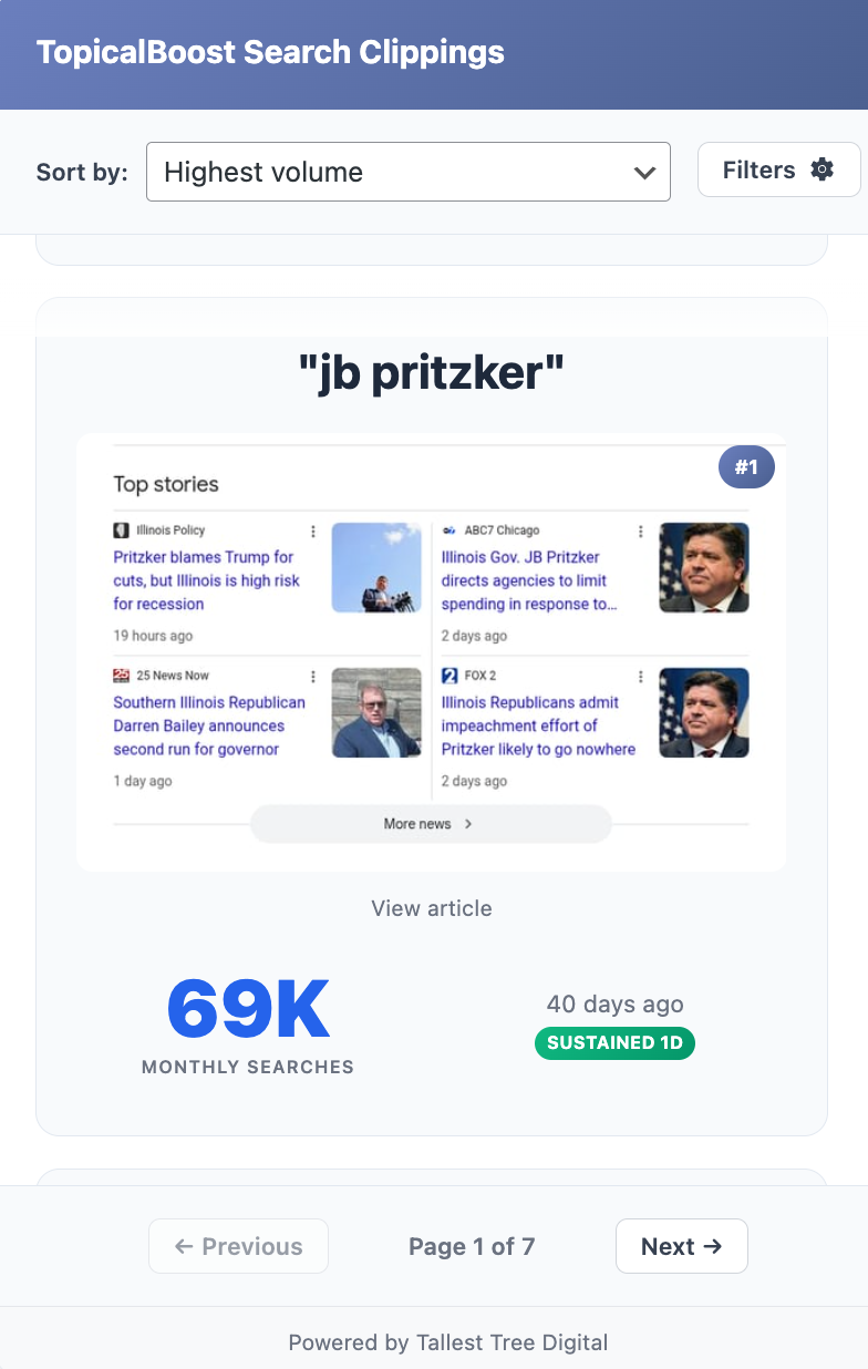 See exactly when you capture a high-volume news cycle, right inside TopicalBoost.